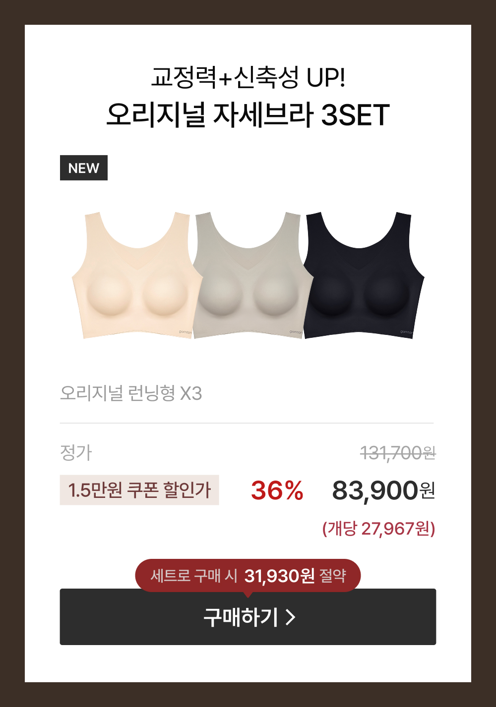 ¿À¸®Áö³Î ÀÚ¼¼ºê¶ó ·±´×Çü ºê¶óÆÒƼ 3set*