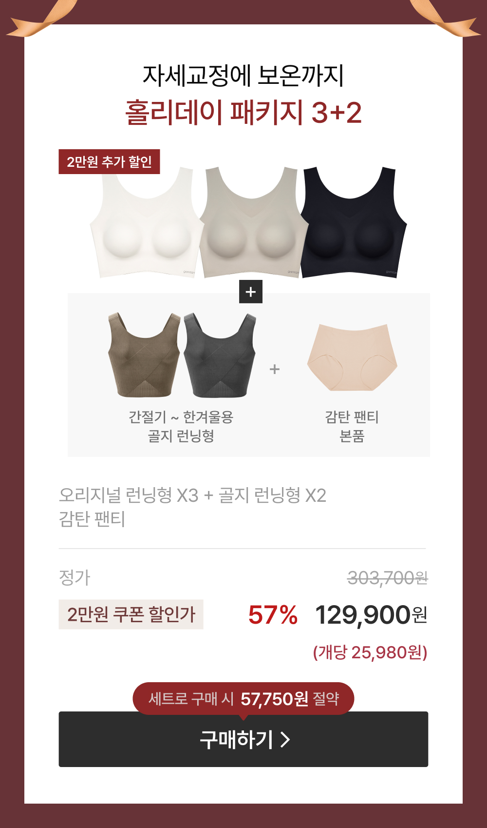 ¼Õ¿¹Áø ÀÚ¼¼ºê¶ó ÆÐŰÁö ·±´×Çü 5set + ÀÚ¼¼ÆÒƼ 1°³*